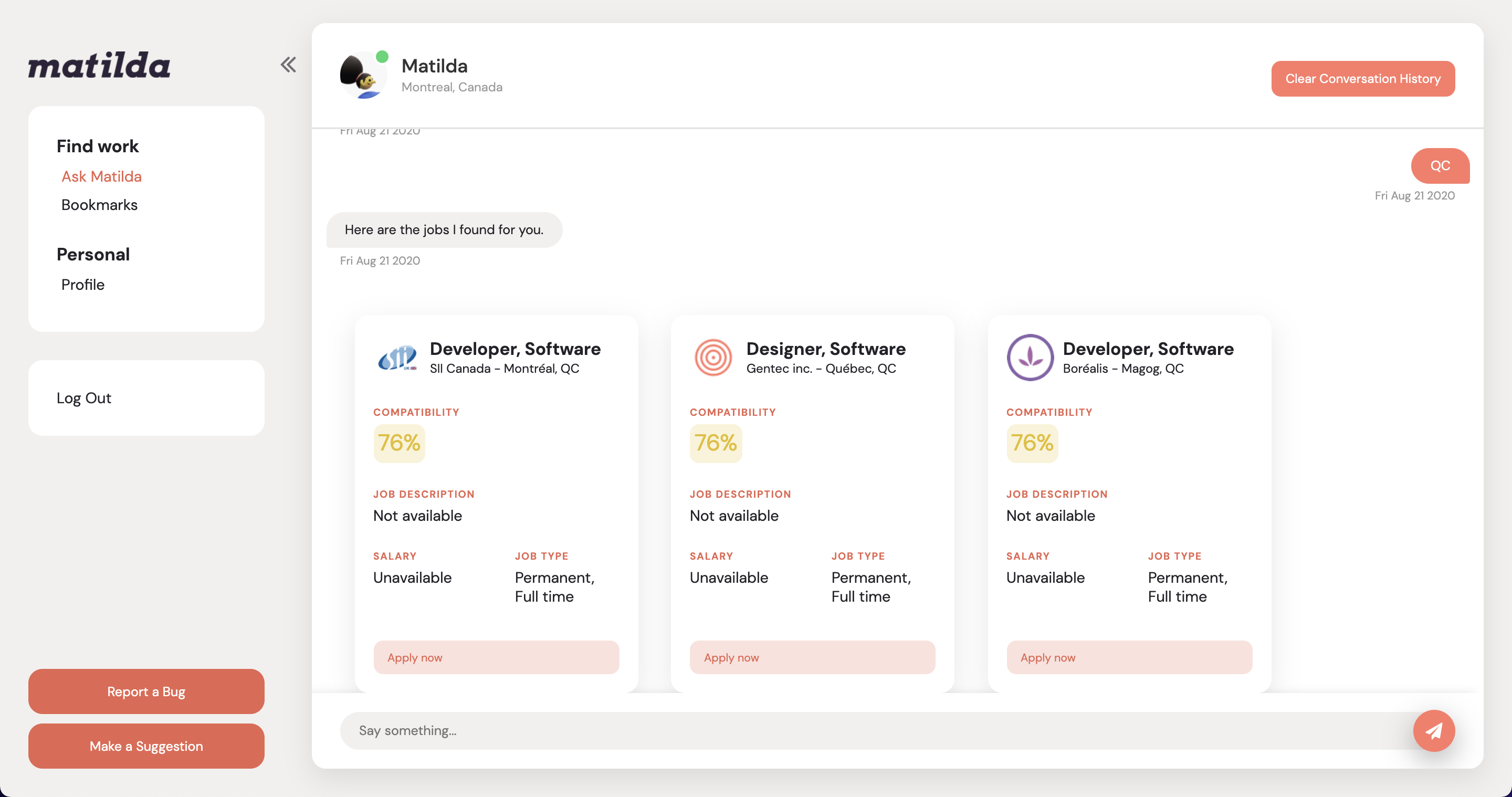 Matilda aims to optimize the job search process for those in most urgent need but little to no experience, using conversational AI to match candidates with the best opportunities to their skillset and needs, while adapting the aspect of human interaction to social distancing realities.